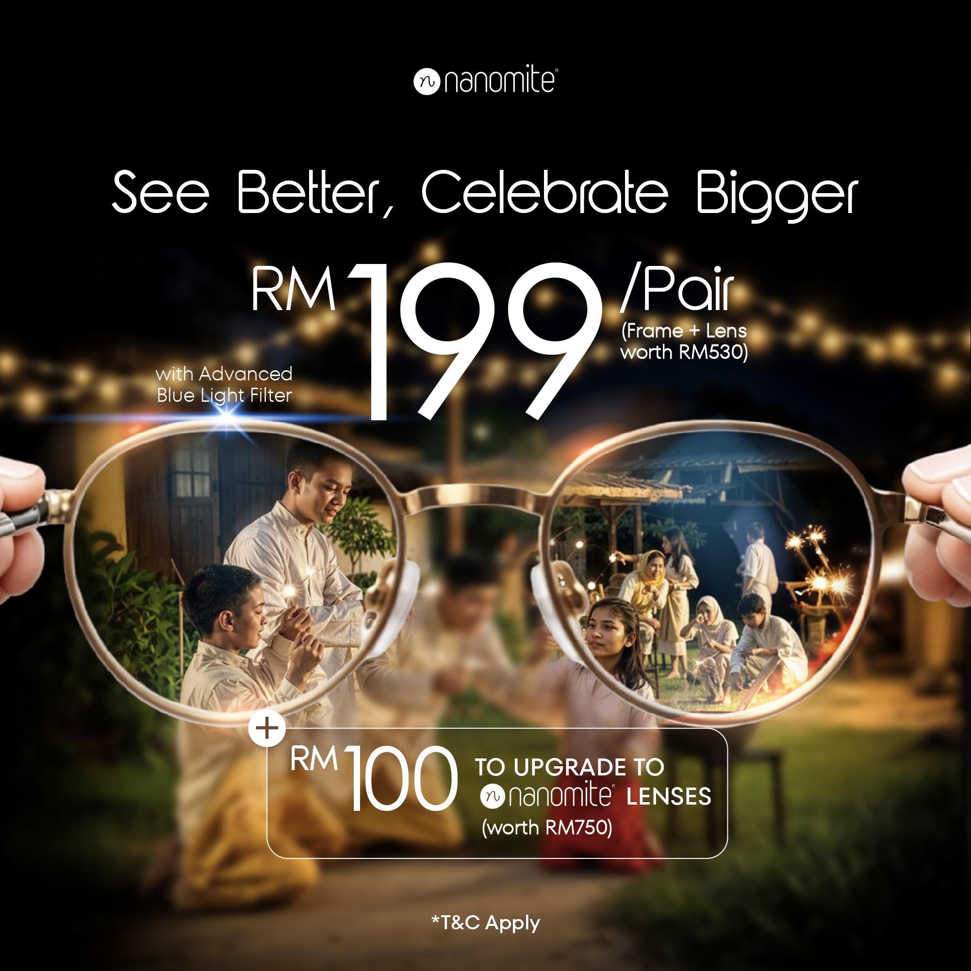 Step into the Raya season with our Nanomite lens—the ultimate eye protection. Shield your eyes, stay stylish, and see clearly wherever you go.